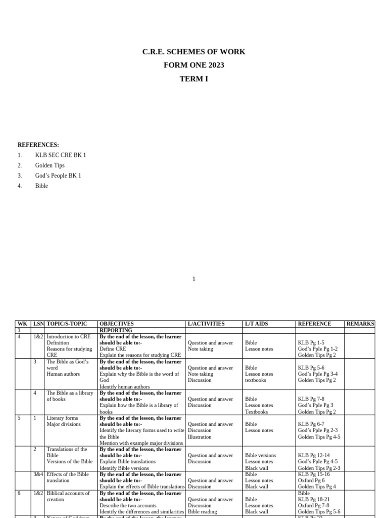 Reasons for studying Define CRE Note taking Lesson notes God’s Pple Pg 1-2