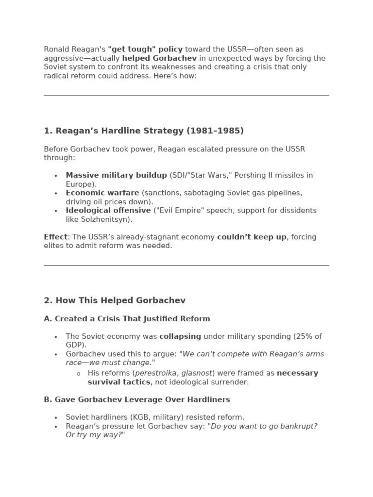 aggressive—actually helped Gorbachev in unexpected ways by forcing the