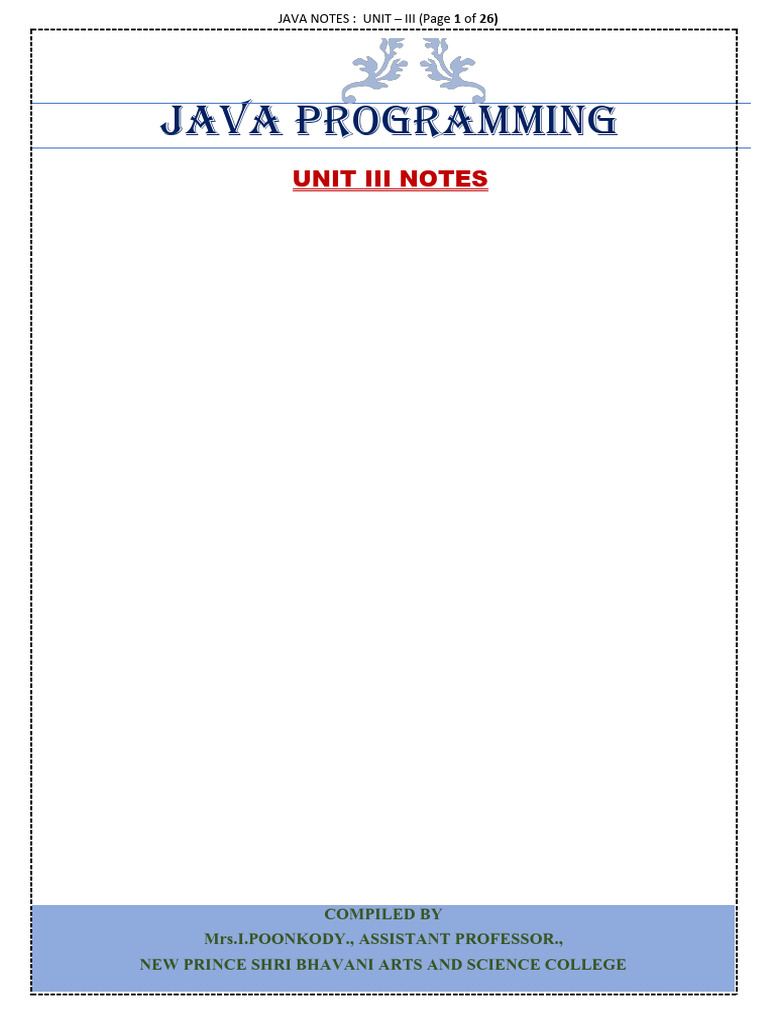 JAVA NOTES : UNIT – III (Page 1 of 26)