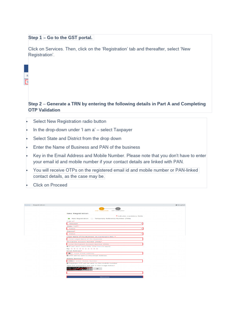 Step 2 – Generate a TRN by entering the following details in Part A and Completing