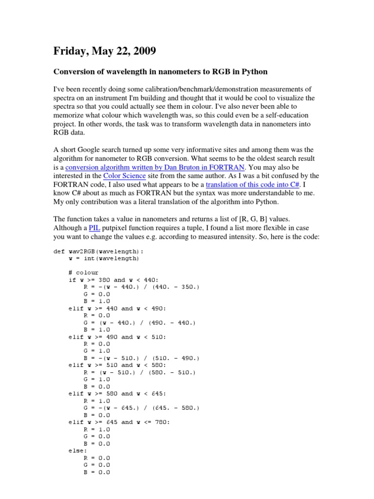 Conversion of wavelength in nanometers to RGB in Python
