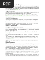 At 1st level, you choose various aspects of your character, including ability scores, race, class, and background. Together these elements help paint a