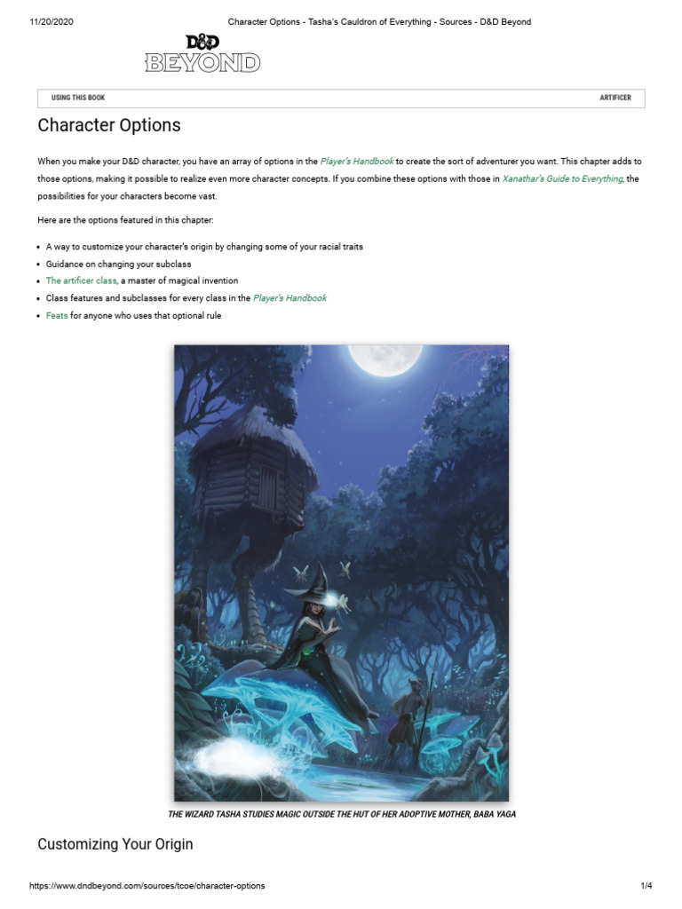 11/20/2020 Character Options - Tasha’s Cauldron of Everything - Sources - D&D Beyond