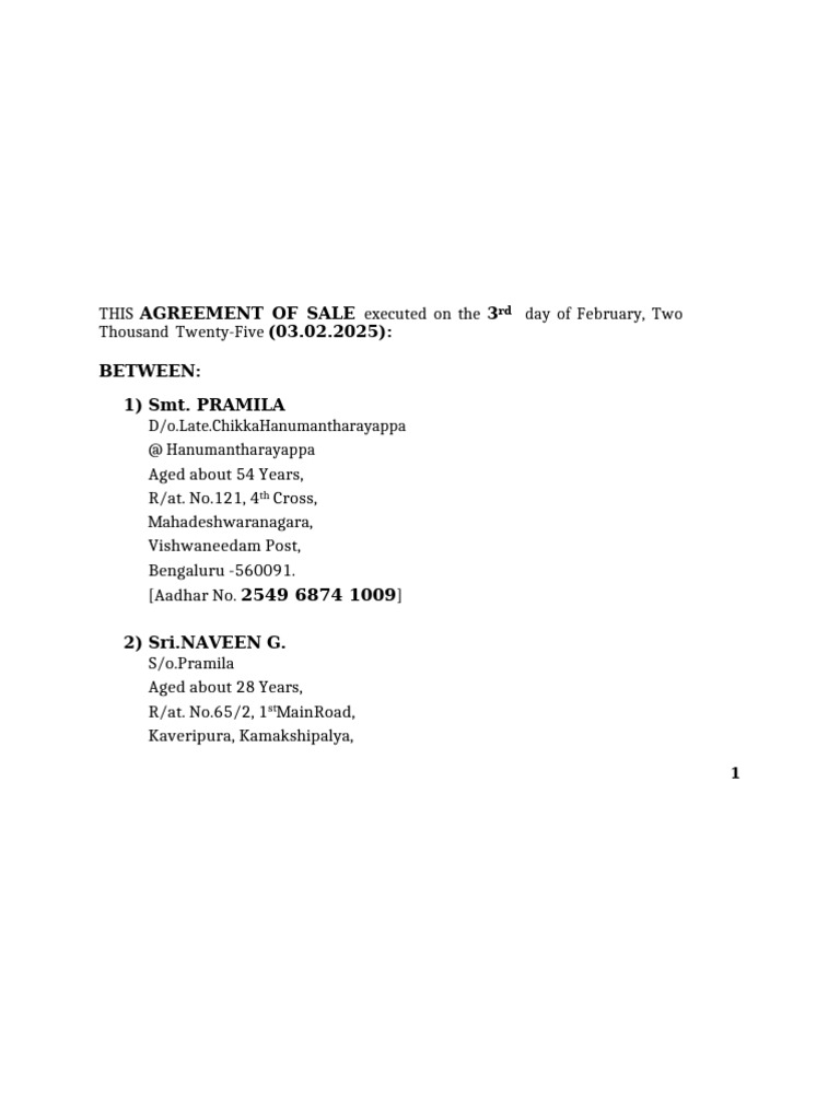 THIS AGREEMENT OF SALE executed on the 3rd day of February, Two