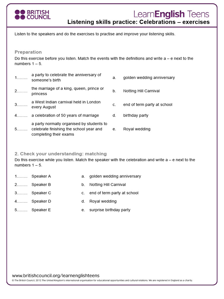 Listening skills practice: Celebrations – exercises