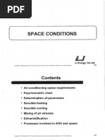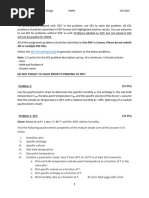 The document presents a problem set related to air conditioning and ventilating systems, requiring computations for various thermodynamic properties of moist air. It includes calculations for partial pressure, specific humidity, degree of saturation, and heat removal for cooling processes. Additionally, it involves graphical solutions using psychrometric charts to determine heat requirements and final dew point temperatures.