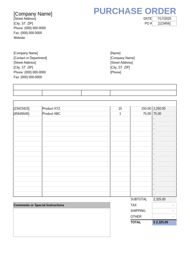 ITEM # DESCRIPTION QTY UNIT PRICE TOTAL