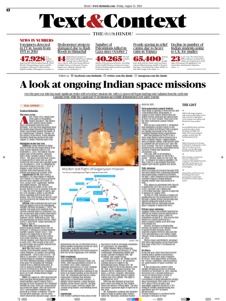 fter a busy 2023, things have deliver heavier payloads per launch than solar research, Gaganyaan