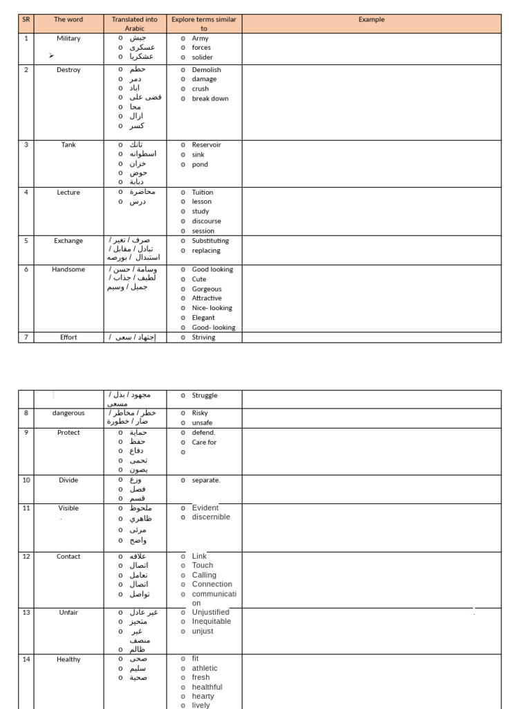 SR The word Translated Explore terms Example