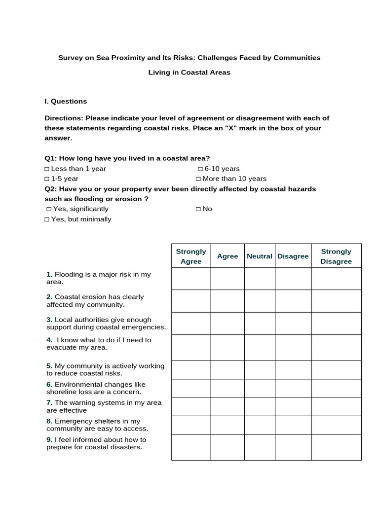 Survey on Sea Proximity and Its Risks: Challenges Faced by Communities