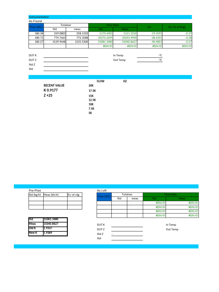 Std (kg/h) Meas (kh/h) Err of rdg Totalizer Flow Rate