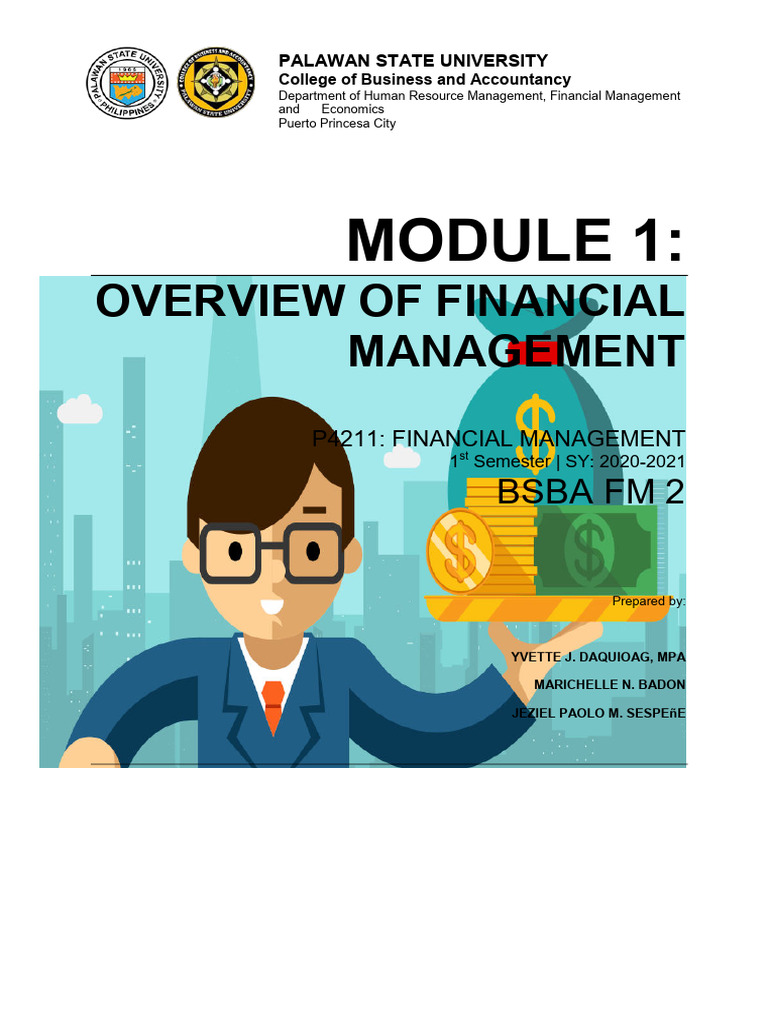 This Instructional Material entitled MODULE 1: OVERVIEW OF FINANCIAL