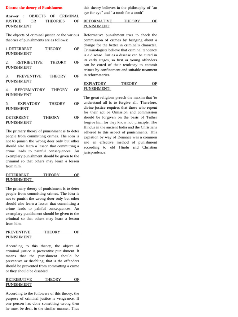 theories of punishments are as follows: commission of crimes by bringing about a