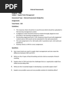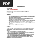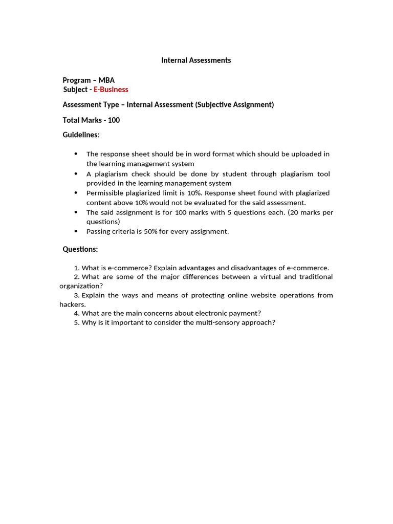Assessment Type – Internal Assessment (Subjective Assignment)