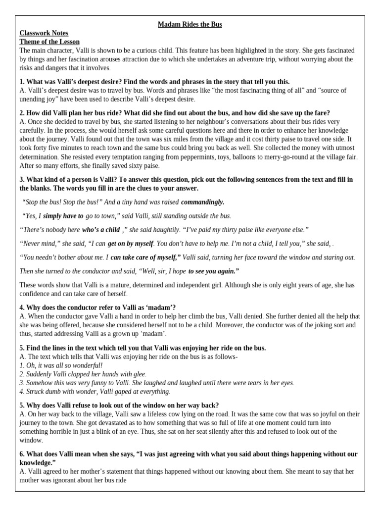 shows extraordinary courage in making the bus journey all alone. Taking inspiration from Valli’s character, write