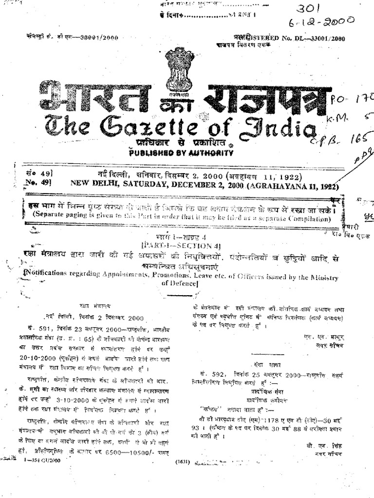 13606 K Magotra, ASC, 14 Ian 2000. 54599 S Shrivastava, Engrg, 12 Jun 99.