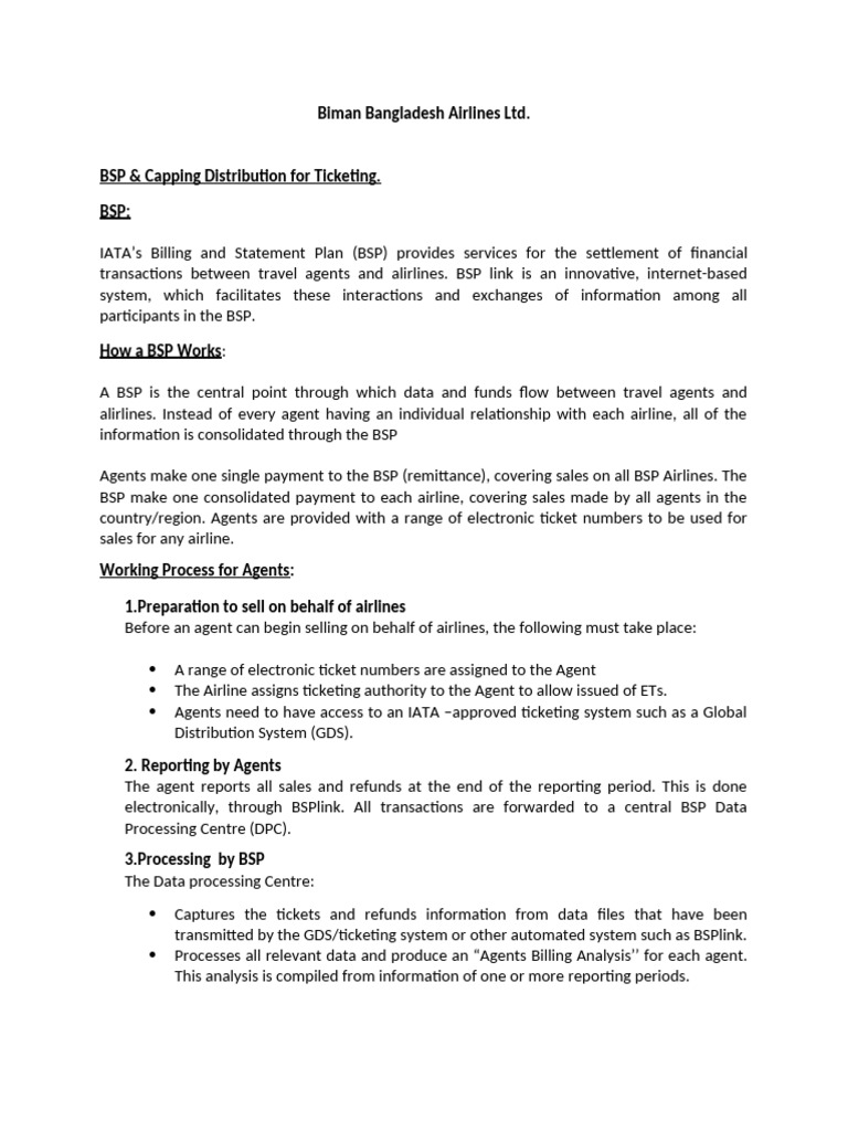 IATA’s Billing and Statement Plan (BSP) provides services for the settlement of financial