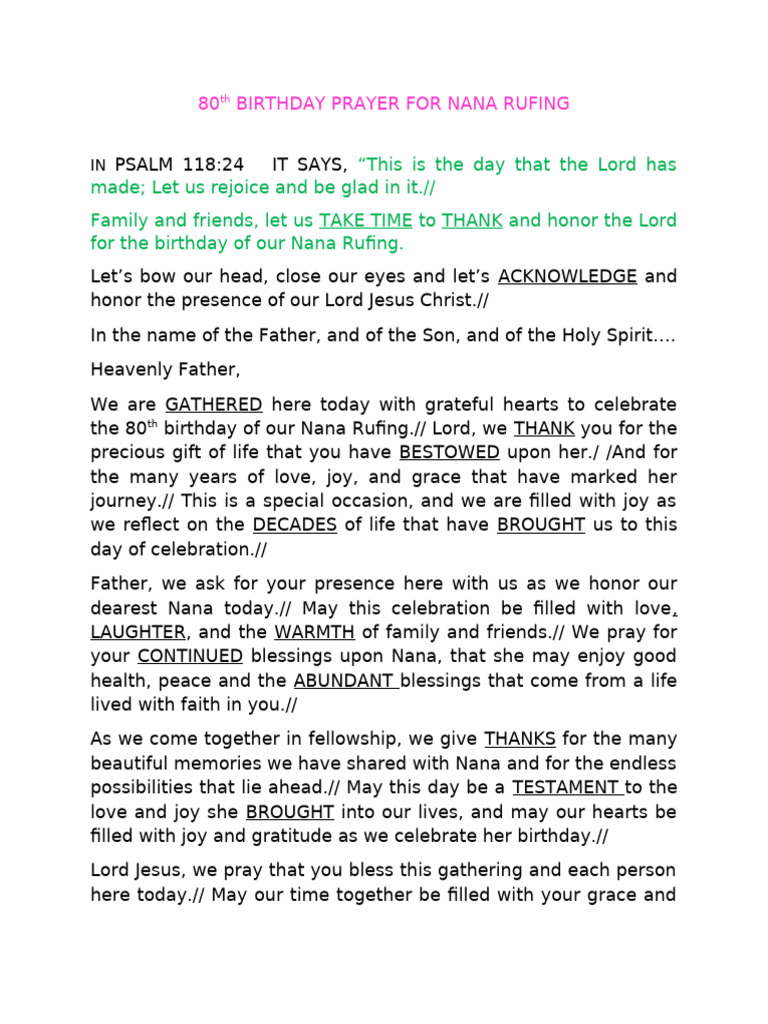 80th BIRTHDAY PRAYER FOR NANA RUFING