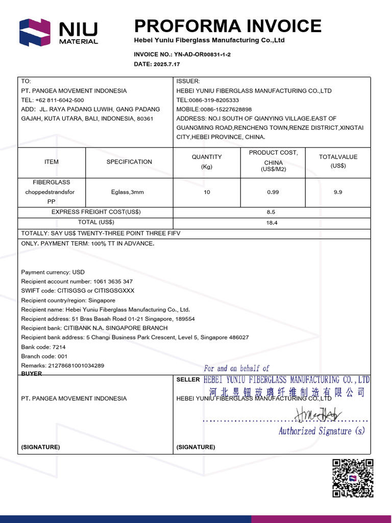 PT. PANGEA MOVEMENT INDONESIA HEBEI YUNIU FIBERGLASS MANUFACTURING CO.,LTD