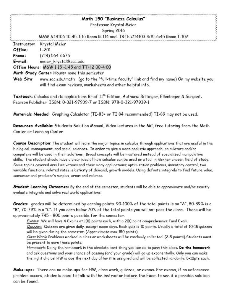 Math 150 “Business Calculus”