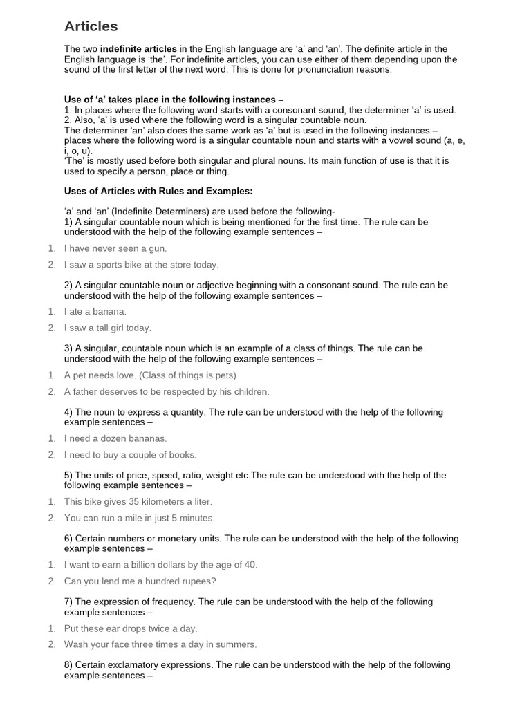 something about a particular member of the group. It is used in place of ‘a’ or ‘an’ and it explains
