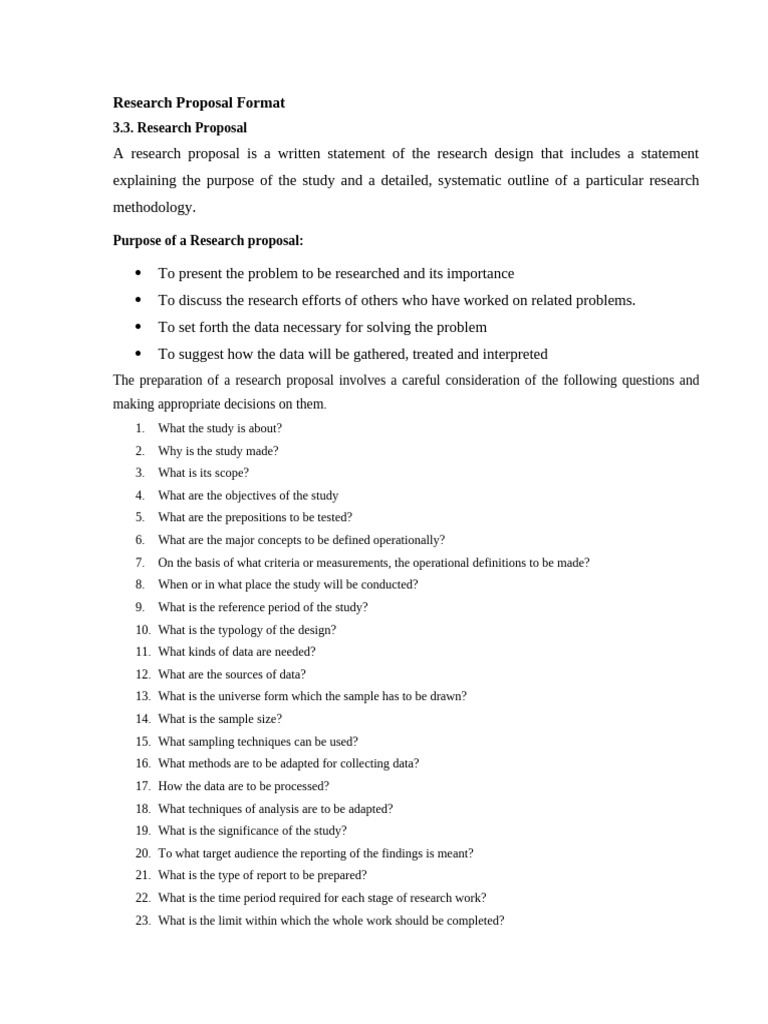 The preparation of a research proposal involves a careful consideration of the following questions and