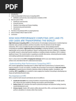 • High Performance Computing (HPC) refers to the use of supercomputers and parallel processing