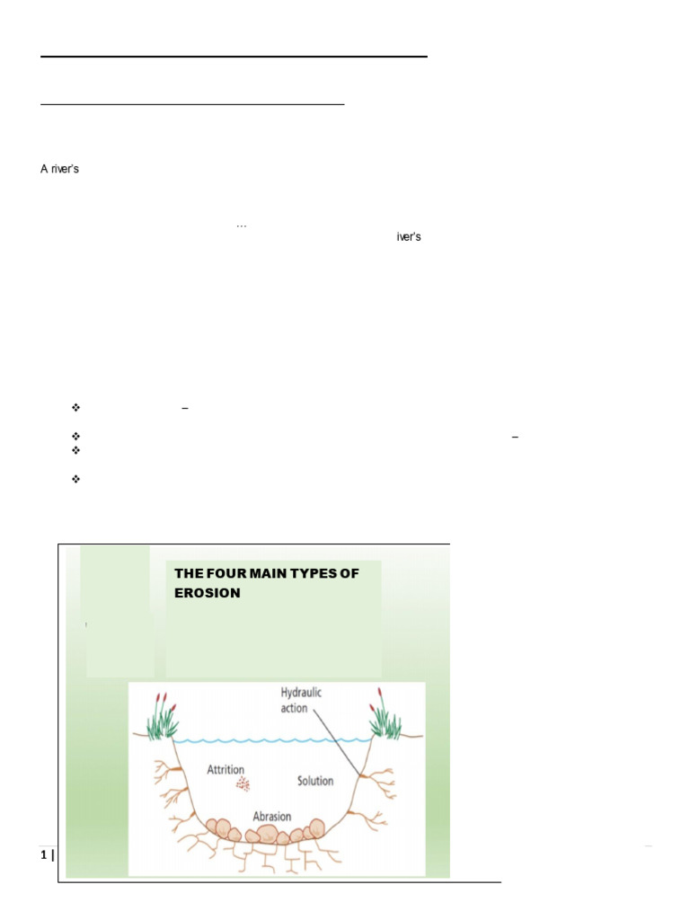 or in a region of steady rainfall. A river does thus, three types of work: It erodes, it transports and it deposits.