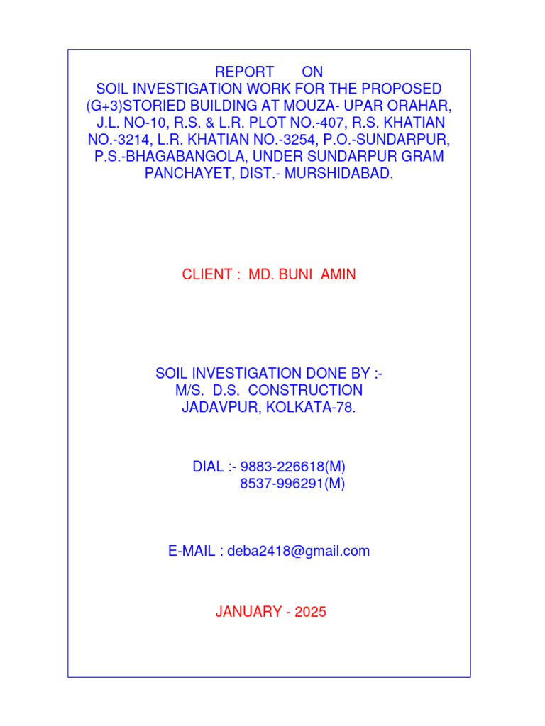 at R.S. & L.R. Plot No.-407, P.S.-Bhagabangola, GEOTECHNICAL