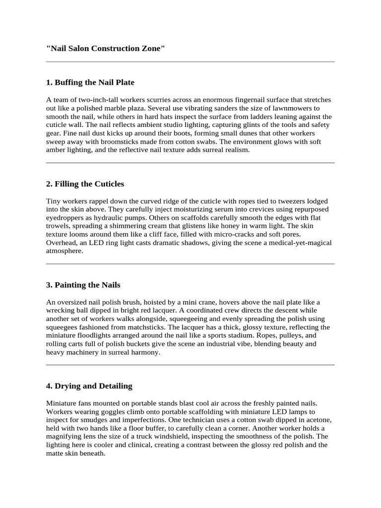"Di dunia rahasia nan mungil… para pekerja mini sibuk membangun salon kuku raksasa!