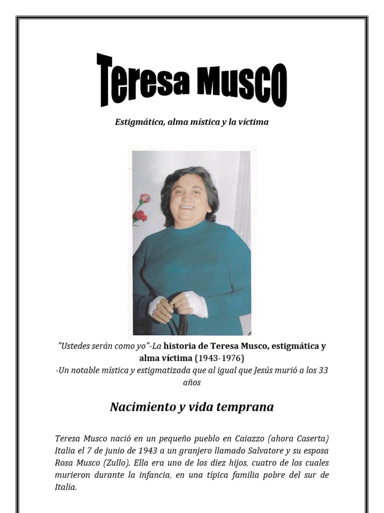 "Ustedes sern como yo"-La historia de Teresa Musco, estigmtica y alma vctima (1943-1976) -Un notable mstica y estigmatizada que al igual que Jess muri a los 33 aos