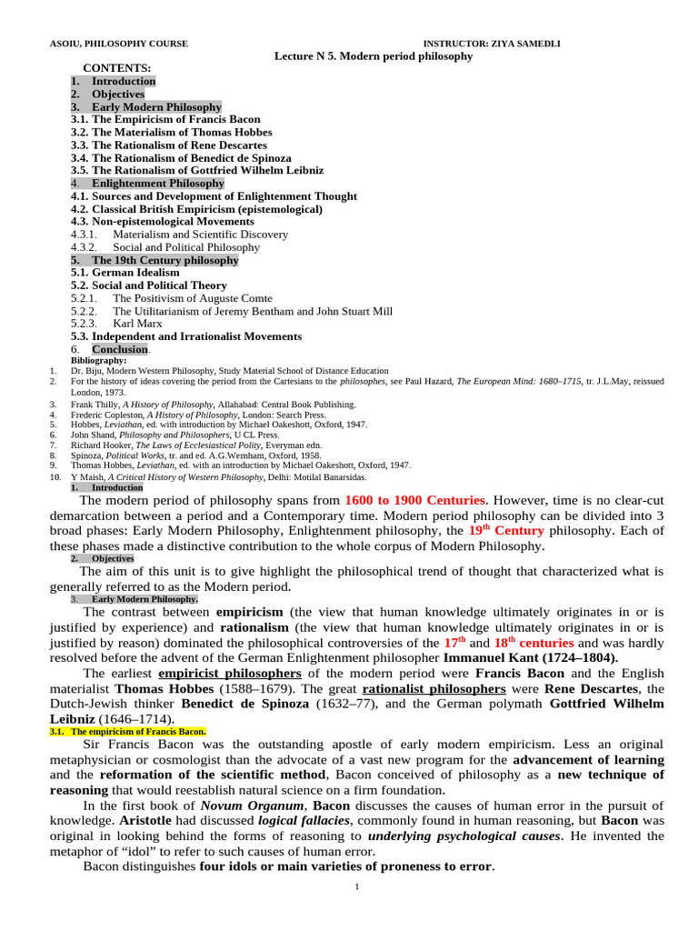 ASOIU, PHILOSOPHY COURSE INSTRUCTOR: ZIYA SAMEDLI