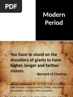 problems, characteristics, and ideas of the Modern period philosophy can be systematized as follows.