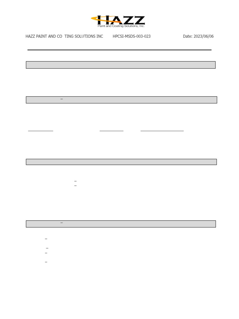 HAZZ PAINT AND COATING SOLUTIONS INC HPCSI-MSDS-003-023 Revision Date: 2023/06/06