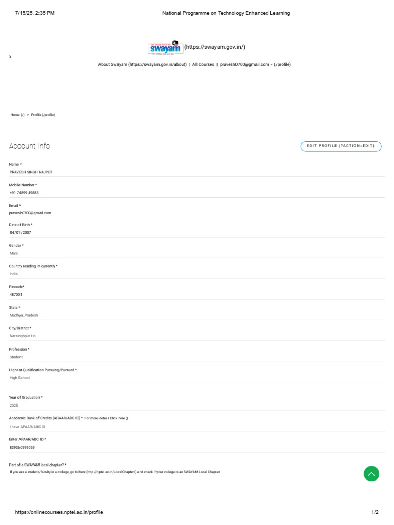 https://onlinecourses.nptel.ac.in/profile 1/2
