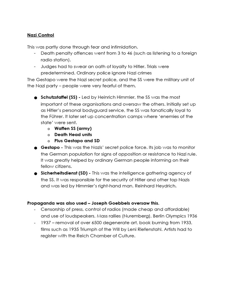 ● Gestapo - This was the Nazis’ secret police force. Its job was to monitor