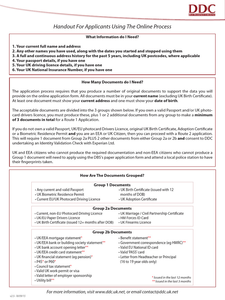 Group 1 document will need to apply using the DBS's paper application form and attend a local police station to have