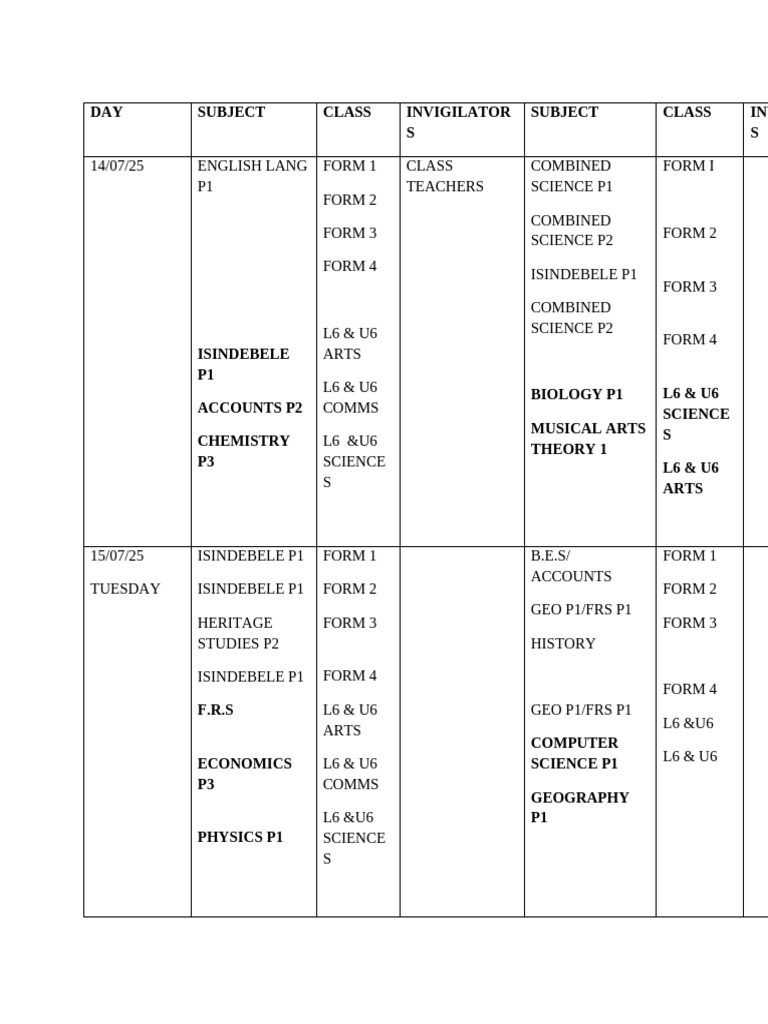 DAY SUBJECT CLASS INVIGILATOR SUBJECT CLASS INV
