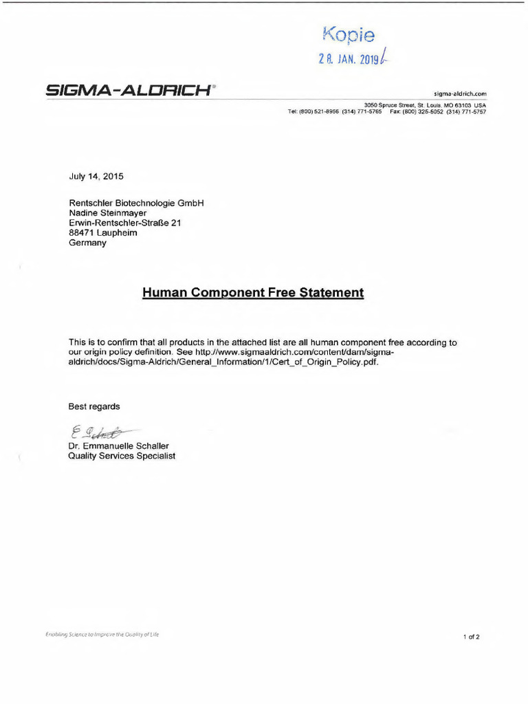 This is to confirm that all products in the attached list are all human component free according to