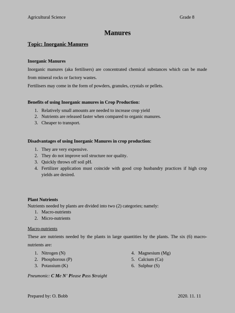 Nutrients needed by plants are divided into two (2) categories; namely: