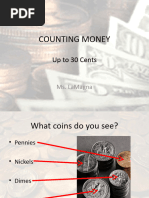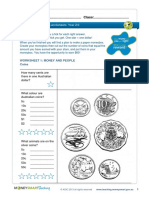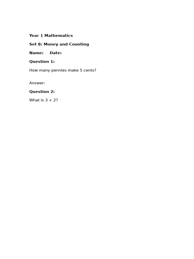 This document is a Year 1 Mathematics worksheet focused on money and counting. It includes questions about counting pennies and basic addition. The worksheet is designed for students to practice their math skills.