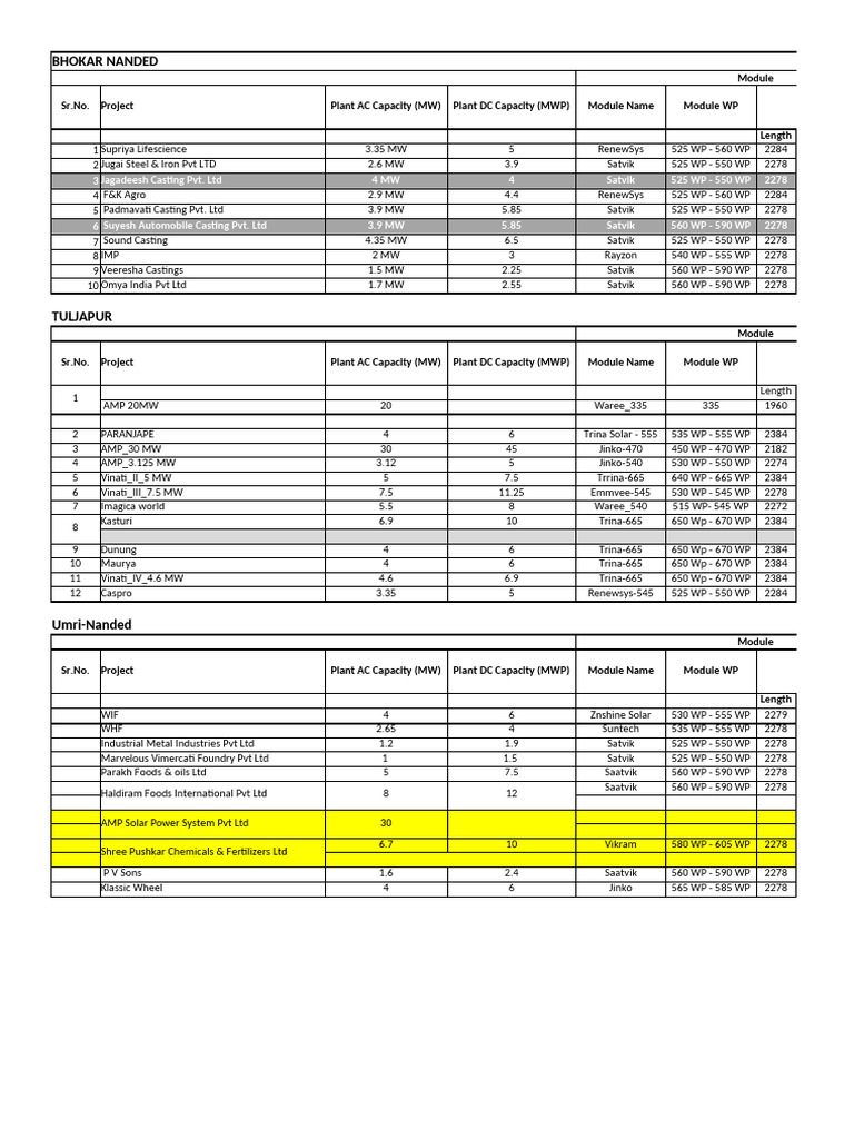 6 Suyesh Automobile Casting Pvt. Ltd 3.9 MW 5.85 Satvik 560 WP - 590 WP 2278