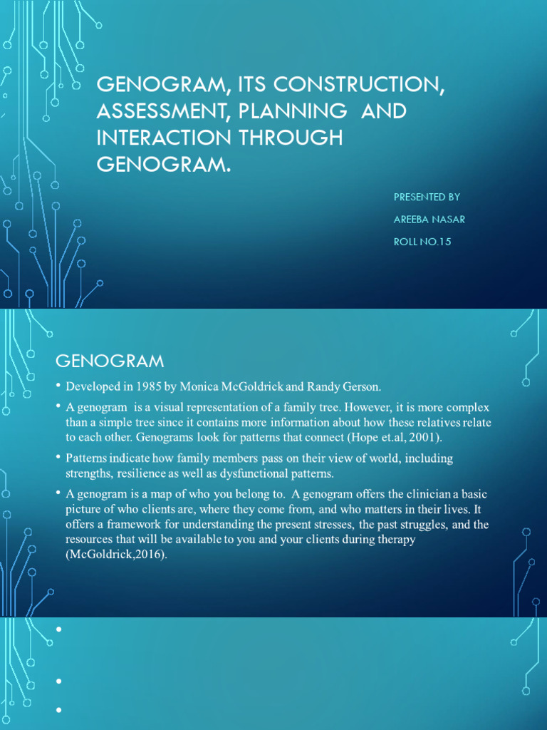 • A genogram is an assessment tool that can be used to open up