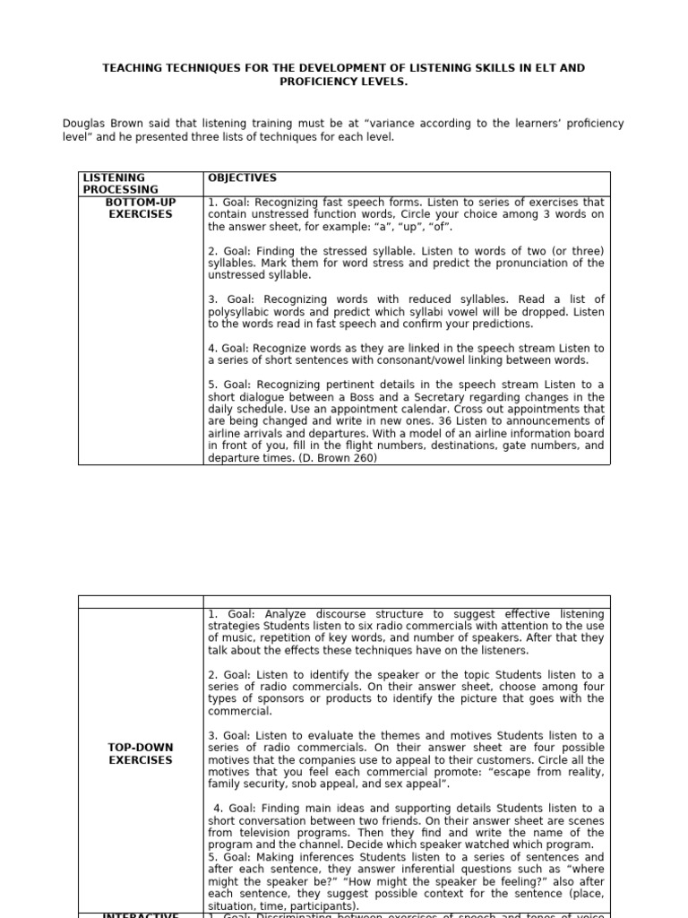 Douglas Brown said that listening training must be at “variance according to the learners’ proficiency