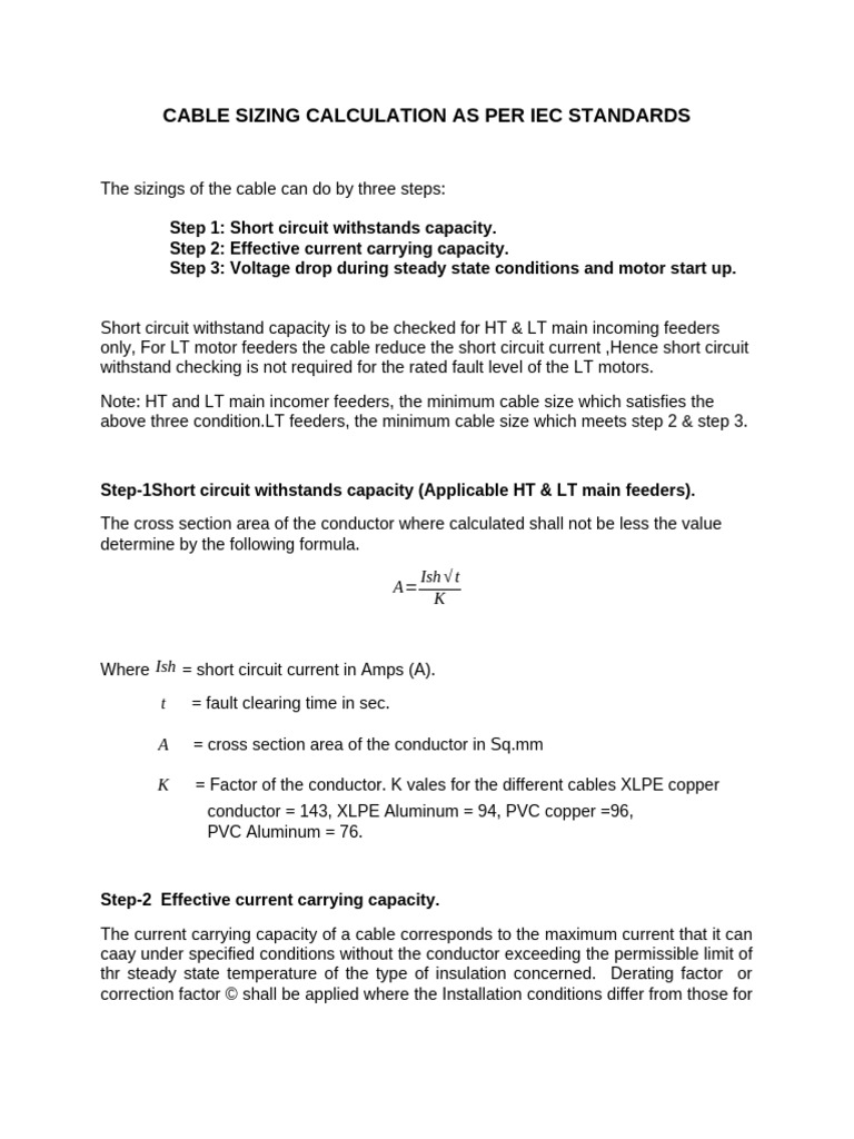 CABLE SIZING CALCULATION AS PER IEC STANDARDS