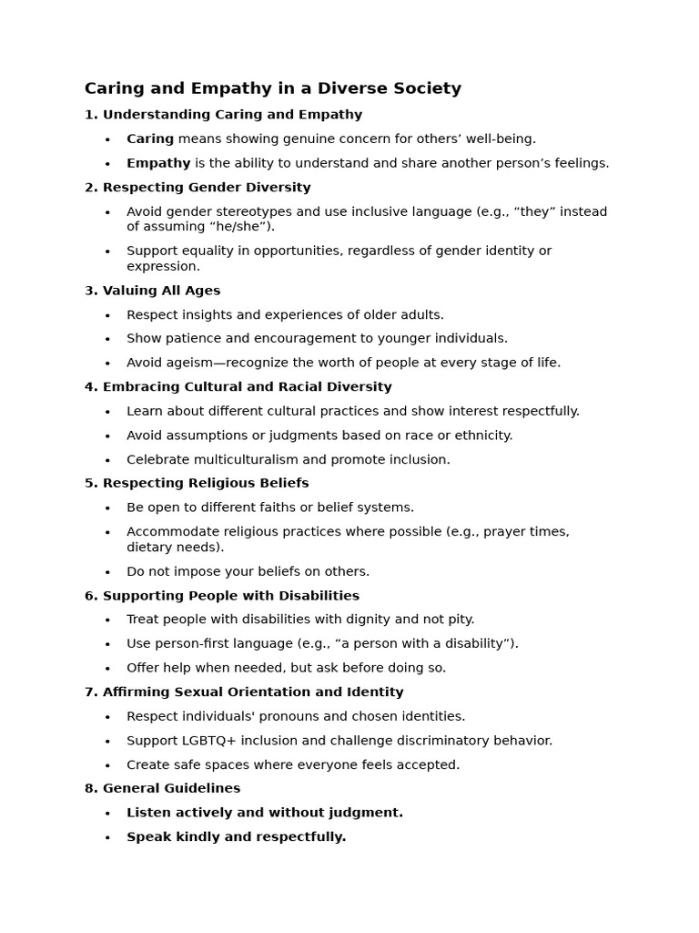 Caring and Empathy in a Diverse Society