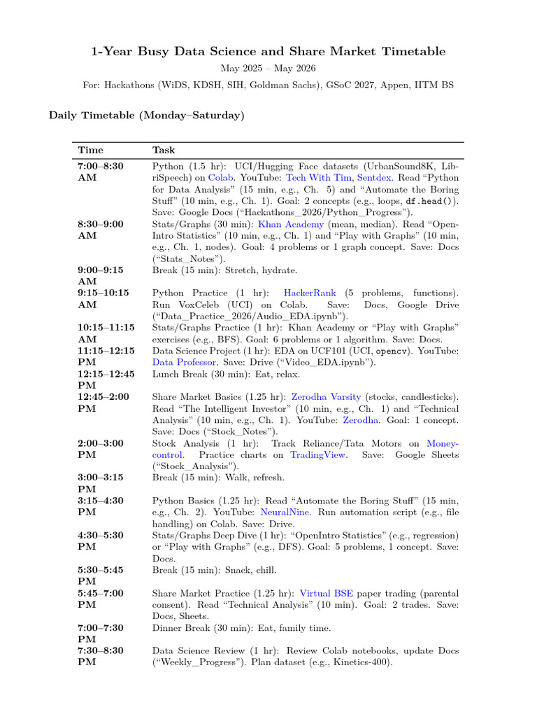 1-Year Busy Data Science and Share Market Timetable