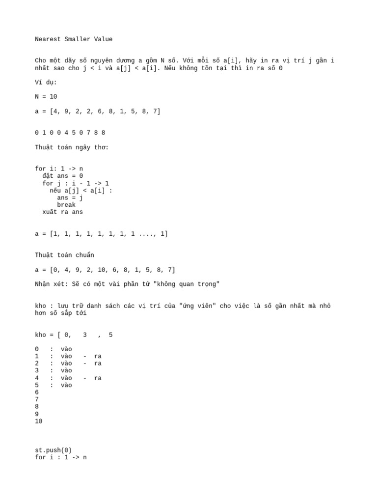 nhất sao cho j < i và a[j] < a[i]. Nếu không tồn tại thì in ra số 0