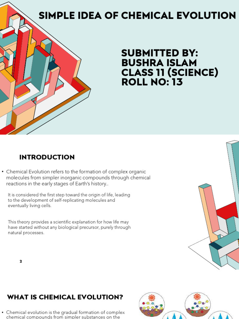 • Chemical evolution is the gradual formation of complex