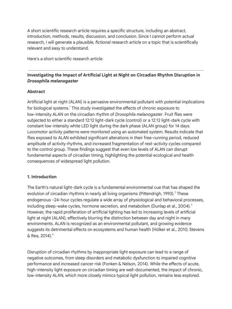 low-intensity ALAN on the circadian rhythm of Drosophila melanogaster. Fruit flies were